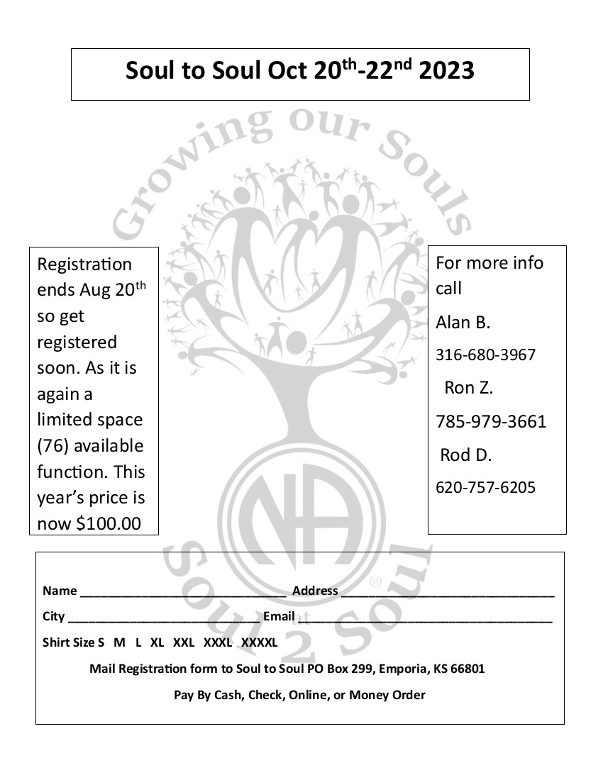 The Regional Service Committee (RSC) meets the third Saturday and Sunday in February, May, August, and November.  The RSC meetings are at 310 Swedonia St, Marquette, KS 67464.  Sub-committee meetings are held on Saturday, and the full RSC meets Sunday morning.