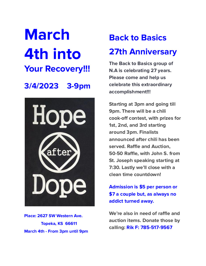 The Regional Service Committee (RSC) meets the third Saturday and Sunday in February, May, August, and November.  The RSC meetings are at 310 Swedonia St, Marquette, KS 67464.  Sub-committee meetings are held on Saturday, and the full RSC meets Sunday morning.